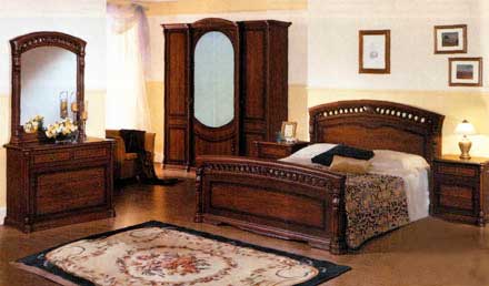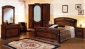 Стоимость набора 95 230 руб. Кровать 2спальная 27 710 руб. Полки 3шт. к 2дверному шкафу 1 400 руб. Шкаф 4дв. (2+2) с 2зеркалами 34 030 руб. Комод 4ящ. 11 970 руб. Тумба 3ящ. 7 120 руб. x 2 шт. Зеркало навесное 5 880 руб. • Текстура: ноче натурале • Фасад: шелкография, матовый лак Для людей, предпочитающих классический стиль, предлагается роскошная спальня в стиле «барокко». В отделке использованы оригинальные итальянские декоративные элементы: пилястры, корона с позолотой. На двери нанесен легкий рисунок.