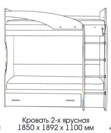 Производитель: SV-Мебель (г. Пенза) Кровать 2-х ярусная с ящиком для белья Материал: ЛДСП Цвет корпуса: Ваниль Цвет фасадов: зеленый, манго, синий Размеры: 1900х1100хh1850 мм спальное место: 800х1860мм