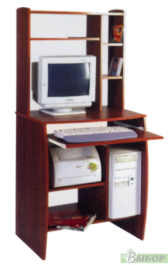Компьтерные столы со специальной нишей для системного блока, выдвижной полкой для клавиатуры, полками для оргтехники, выкатными ящиками и секциями (открытые и с дверцами) для хранения вещей и документов.