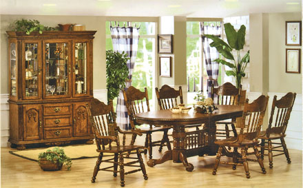 Комплектация: буфет, обеденный стол раздвижной, стулья. Прямоугольная  витрина с короной в наборе мебели для столовой придаст дому особый стиль. Витрина занимает совсем немного места, но обладает большой декоративностью. Обеденный стол раздвигается в случае приема большого количества гостей.