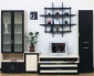 Мебель для гостиной в стиле модерн с японскими нотами. Витрина, полки, тумба для TV и аппаратуры, шкаф-пенал.