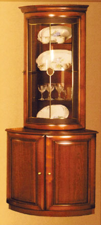 Витрина угловая в классическом стиле с радиусными фасадами. Занимает минимум пространства в помещении, сохраняя свою функциональность. Дом мебели «Клен» представляет широкий ассортимент мебели: • кухни, • стенки, • детские, • спальни, • прихожие, • мягкая мебель, • офисная мебель, • шкафы-купе.